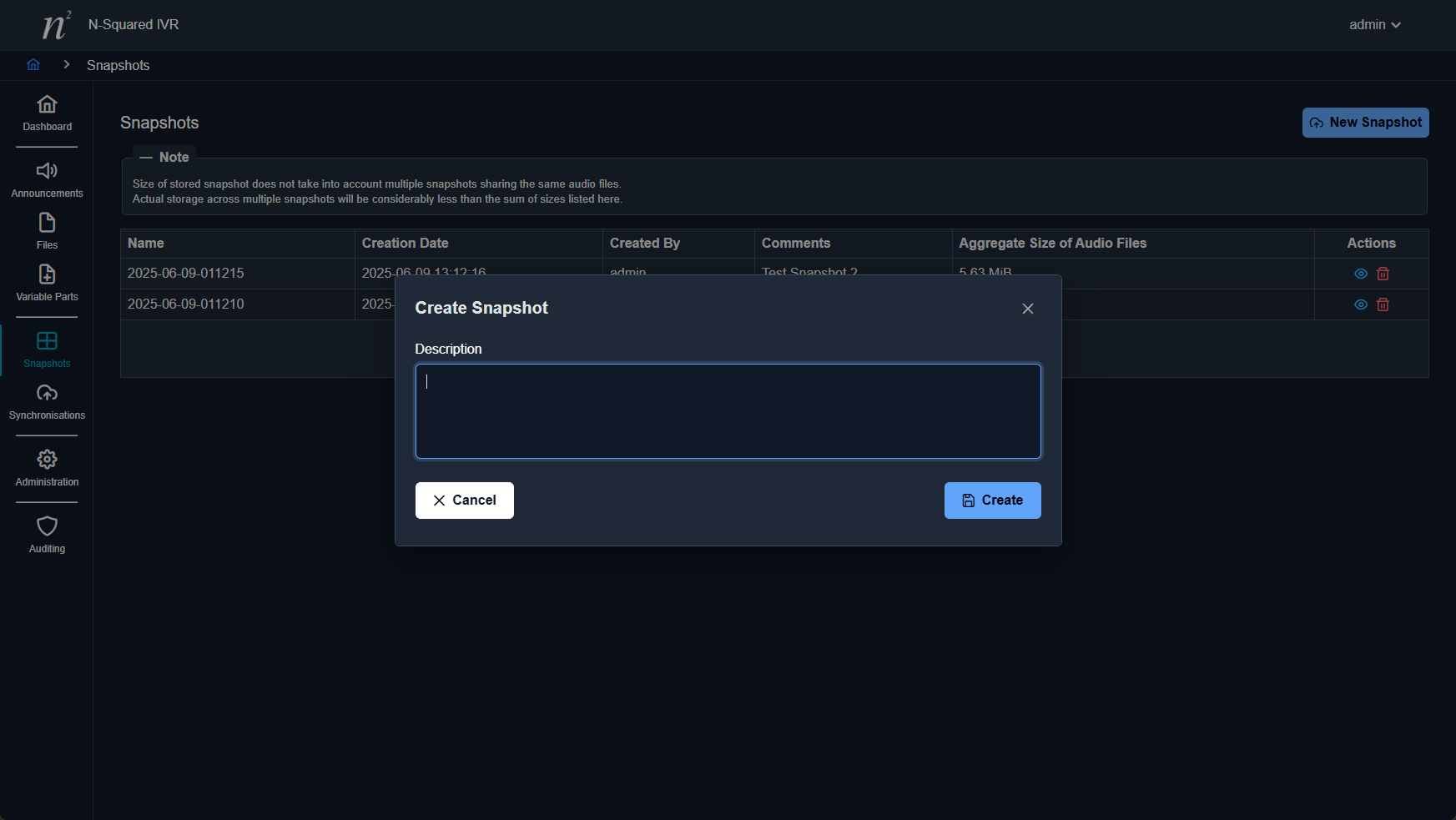 in the database is removed and any associated audio files solely used by that snapshot are also removed.