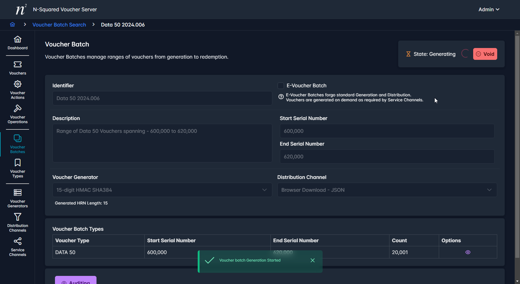 Generated | The Voucher Batch has been generated and is ready for distribution. |