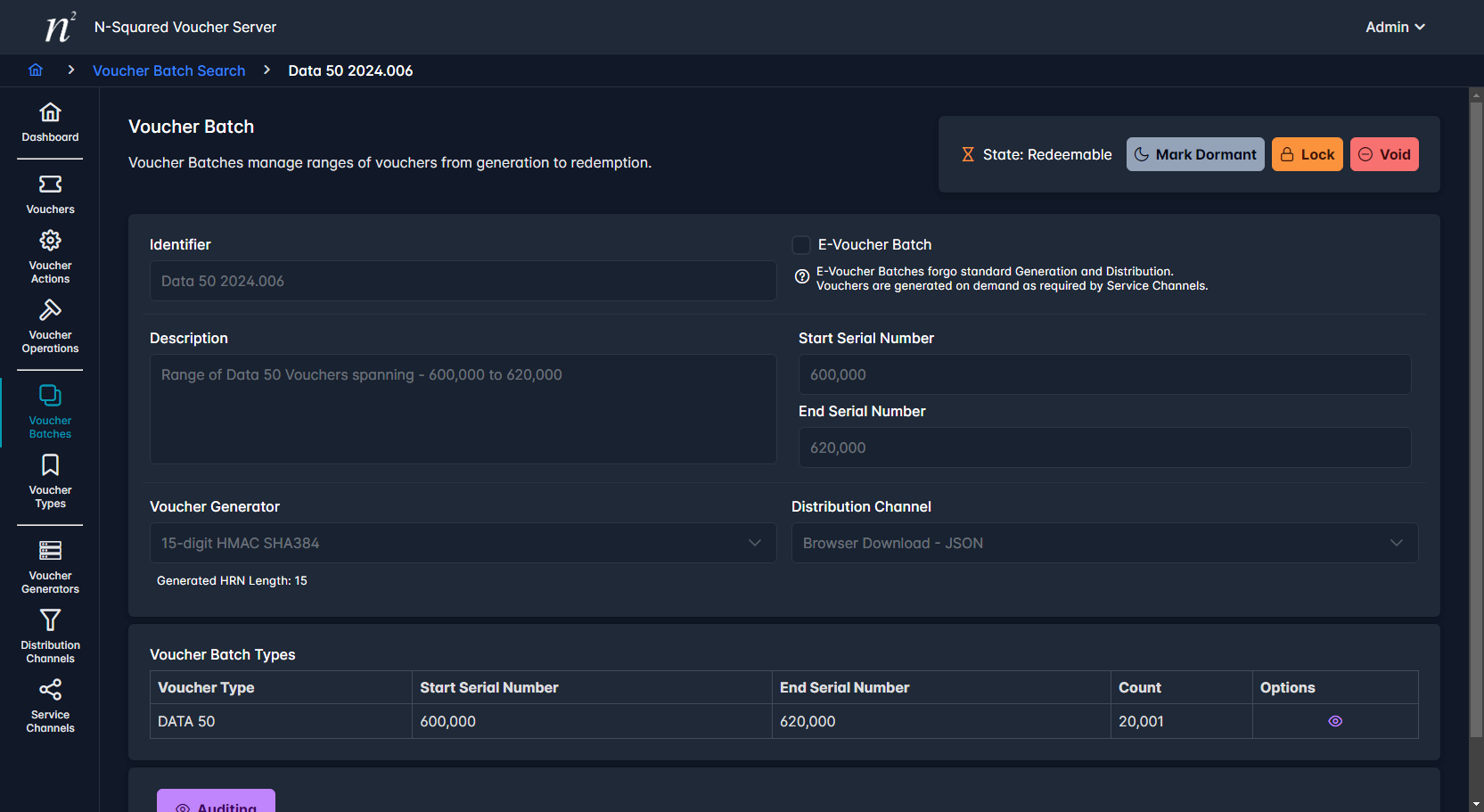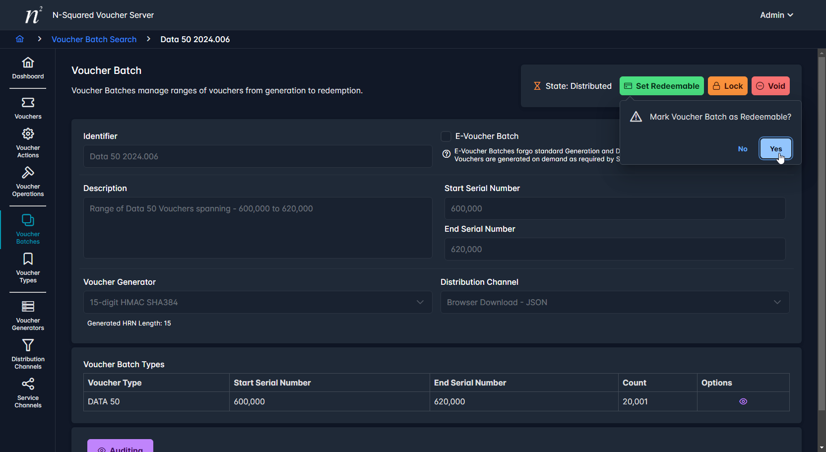 - Mark the entire Voucher Batch as Redeemable, Vouchers can now be redeemed.Lock