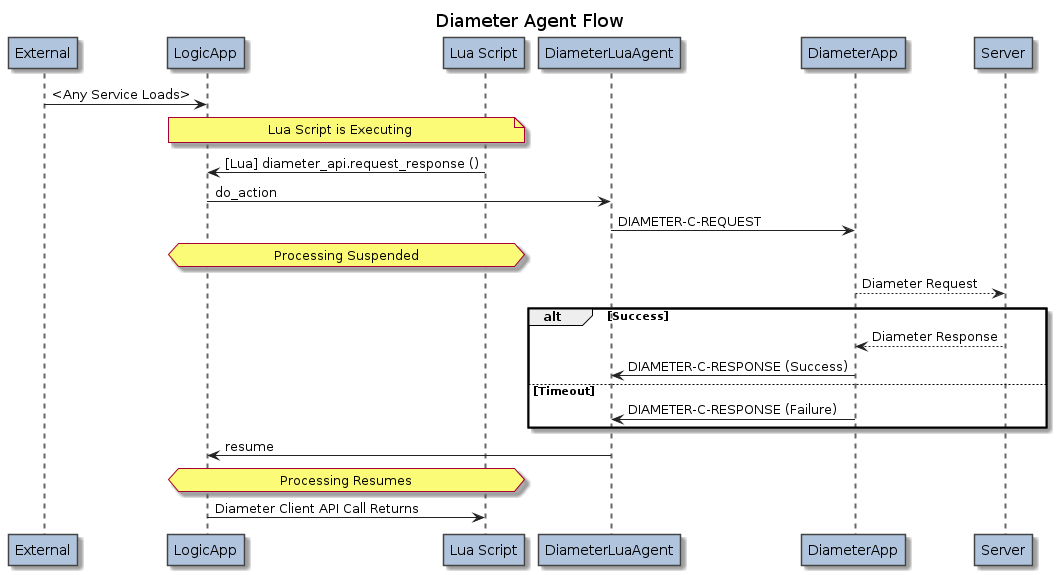 The DiameterLuaAgent is an asynchronous helper for Lua scripts running within the LogicApp. It is used for sending out Diameter client requests.